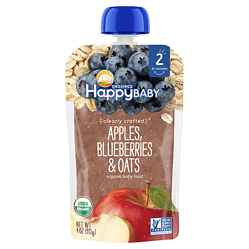 Happy Baby Organic Stage 2 (6+ Months) Blueberries & Oats Apples Organic Baby Food 4 Oz