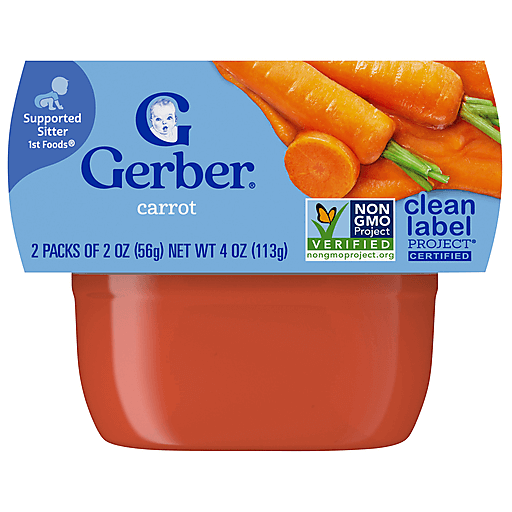 Gerber Stage 1 Baby Food, Carrot Puree Tubs are a premium choice for your child’s early stages. Crafted to help support their nutritional needs, along with meeting the busy lifestyle needs of caretakers and parents. Each baby puree tub is made in a portable, easy-to-store format – making it perfect for life’s busy moments. This stage 1 baby food puree is designed for babies who are able to sit with help or support and are ready to start solids. Gerber understands the importance of providing wholesome ingredients during the crucial developmental stages of your child's life -- that’s why these tubs are Non-GMO Project Verified. This vegetable baby food puree has no added salt, and no artificial flavors or colors. They need to be refrigerated after opening and must be used after 1 day. Gerber baby puree is ideal for parents who seek a convenient and high-quality option in their baby's diet.
