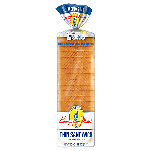 Evangeline Maid® Thin Sliced White Enriched Sandwich Bread has a rich flavor and history. Just like gumbo, boudin, jambalaya and boiled crawfish, Evangeline Maid white bread loaf is often enjoyed with friends and family. The iconic taste and soft texture of each white bread slice is a product of the gifts of the bayous, marshes and prairies in South Louisiana. With Evangeline Maid bread you can enjoy authentic taste whenever you want to make flavorful deli-style lunches, peanut butter and jelly sandwiches, buttered toast, or even a spicy dip or sweet dessert like bread pudding. Not only is this white bread delicious, but it's also a low-fat, cholesterol-free food. For freshness that can't be beat, choose Evangeline Maid White Bread.