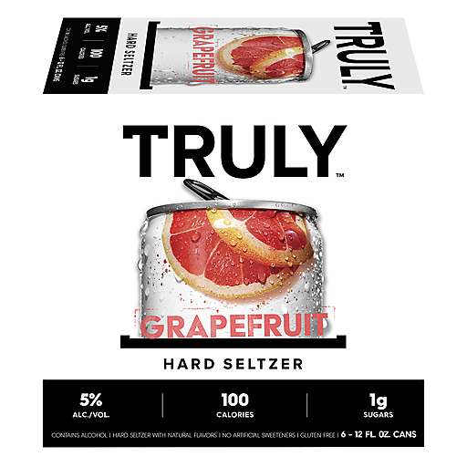 Truly Grapefruit Hard Seltzer 6 EaHard Seltzer with natural flavors. 100 calories. 1 g sugars. Gluten free. No artificial sweeteners. Please drink responsibly. 5% alc./vol. 10