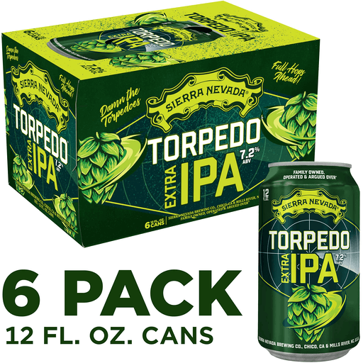 Open the iconic Sierra Nevada Torpedo Extra IPA and hold on tight: Damn the Torpedoes, Full Hops Ahead! This 7.2% ABV West Coast India Pale Ale launches explosive notes of citrus, tropical fruit and pine, all cranked to max flavor through the custom Hop Torpedo dry-hopping device. Beer flows out of a fermentation tank, surges through the Hop Torpedo — packed with 75 pounds of hops — and back into the tank for a supercharged IPA. Balanced with smooth caramel malt, Torpedo Extra IPA delivers the intense flavor you want. Take a pack of this craft beer to the cookout and pair it with bold foods like spicy wings or steak. Keep the Torpedo Extra IPA stocked for football season, and reach for one after you go big outdoors: mountain biking, climbing, skiing, and more. Available in both cans and bottles, Sierra Nevada Torpedo Extra IPA is ready for anything, from remote campsites to relaxed nights at home. Sierra Nevada Brewing Co. is still 100% family owned, operated, and argued over.