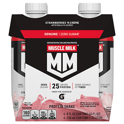 Muscle Milk Zero Sugar Genuine Strawberries 'N Creme Protein Shake 4 Ea