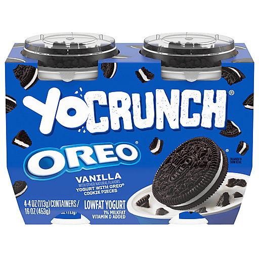 Add some crunch with a 4-pack of YoCrunch(R) Vanilla Lowfat Yogurt with OREO(R)* Cookie Pieces. This lowfat vanilla yogurt is deliciously smooth and creamy. Best of all, it comes with OREO(R)* cookie pieces as a topping so you can add a fun crunch to every bite. At YoCrunch, we’ll never stop cranking up every basement and basic hang with some yogurt goodness and a whole lotta crunched up, over-the-top fun. Our lowfat yogurt comes in single serve yogurt cups, pairing tasty flavors with delicious toppings for a pre-portioned, off-the-charts yummy treat. With calcium and vitamin D, these fun, sweet snacks offer the goodness of yogurt with crunchy cookie pieces your family will love. YoCrunch puts snack time in your control. Grab a yogurt cup and sprinkle your desired amount of toppings, save them for last, or mix 'em all in for maximum crunch. Pack as a snack for school or road trips. Enjoy them as snacks to go during busy days or for a fun mid-day break. Available in a wide range of flavors and toppings, YoCrunch offers a fun snacking experience. Mix it up with YoCrunch Vanilla Lowfat Yogurt with OREO(R)* cookie pieces. *OREO(R) and the OREO(R) Wafer Design are trademarks of Mondelez International group, used under license.