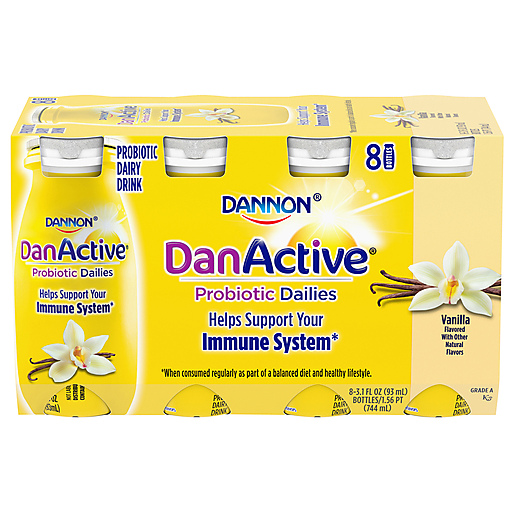 Start your day off right with a DanActive Probiotic Dailies Dairy Vanilla Drink. With 10 billion live and active probiotics in every 3.1 oz bottle, it’s a smart addition to a balanced diet and may help support your immune system. This gluten-free yogurt drink has a sweet vanilla flavor and is a good source of calcium.