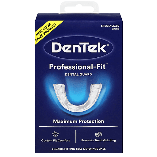 DenTek Professional-Fit Dental Guard fits the front and back teeth and offers custom-fit protection similar to a professionally made mouth guard – for a fraction of the cost. Quickly customize the DenTek Professional-Fit Dental Guard, using Comfort Tek fit, in 3 easy steps. Complete fitting instructions are inside the package. Read all instructions and watch the full video before fitting the DenTek Professional-Fit Dental Guard. All parts are BPA free. DenTek Professional-Fit Dental Guard will give you 6 months of guaranteed protection from the date of purchase (1). DenTek is the Number One OTC dental guard brand for nighttime teeth grinding (2). Teeth grinding, also known as bruxism, is when a person clenches their jaw and the upper and lower teeth scrape and grind against each other. DenTek Professional-Fit Dental Guard helps to prevent conditions caused by teeth grinding including jaw discomfort, tooth chipping and cracking, and headaches. Help preserve and protect your natural teeth for a lifetime with DenTek's innovative dental care products. FSA- and HSA-eligible product in the U.S. (1) Proof of purchase required, see details inside package (2) Source: IRI Data Total Units Sold L52W Ending 02.23.25 Multi-Outlet + Convenience Stores