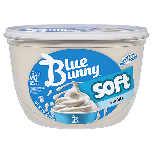 Turn any ice cream lover into a big softie with Blue Bunny Soft Vanilla Flavored Frozen Dairy Dessert. Cold and creamy, this frozen vanilla treat is a new take on the soft serve ice cream experience you love, straight from your freezer. This frozen dessert is full of delicious vanilla flavor. Enjoy the frozen dessert by the spoonful, by the bowl or straight out of the container—the bunny doesn't judge. So swirl in some fudge. Top off with whipped cream. Bury your bowl with fresh berries. This new take on soft serve is fun to scoop and even more fun to eat. Why go out for vanilla ice cream when you can stay in? With this resealable tub, the soft serve experience has never been more convenient. However you enjoy frozen deliciousness, make life more fun with Blue Bunny.
