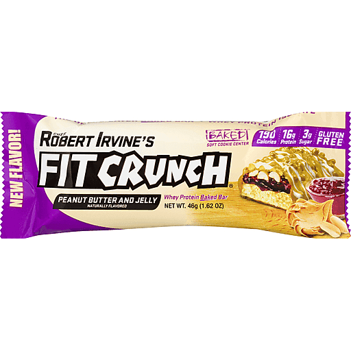 Naturally flavored. 190 calories. 16 g protein. 3 g sugar. Gluten free. May be produced with genetic engineering. Chef Robert Irvine's Fit Crunch. Baked - Soft cookie center. New flavor! The only 6-layer Baked Bar. Whey protein isolate. My goal is simple; I want to empower people, through food and fitness, to thrive each day. - Chef Robert Irvine. www.fitcrunchbars.com. fitcrunch.com Connect with us (at)fitcrunchbars. Instagram. Facebook. Twitter. Youtube. Pinterest. Product Question? Email: customerservice(at)fitcrunchbars.com. Learn more at www.fitcrunchbars.com. Visit fitcrunch.com for fitness tips & recipes. Made in USA.