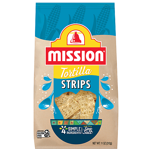 Bring friends and family together at your next celebration with the crispy, crunchy goodness of Mission Strips Tortilla Chips. Our tortilla strips are made with only four simple ingredients, including a sprinkling of sea salt for authentic flavor. They are also certified gluten-free and kosher, and they don’t contain any artificial flavors, artificial colors, or preservatives. Our tortilla strips can hold up to almost any topping, whether you pile them high with chunky guacamole or dip them in queso. We also recommend pairing our tortilla chips with your favorite Mission salsa and dips. Includes one 11 oz. bag of Mission Strips Tortilla Chips.