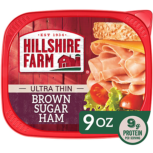 Bring the goodness of the farm to your table and experience the taste of a homestyle meal on a sandwich with Hillshire Farm Ultra Thin Sliced Brown Sugar Ham Sandwich Meat. Our sweet and savory thinly sliced ham lunch meat is made with real brown sugar and carefully crafted with the highest quality ingredients. Our farmhouse quality ham is slow roasted for hours and made with no artificial preservatives or flavors, and no nitrates or nitrites added (except for those naturally occurring in the celery juice powder and sea salt). Try our gluten-free sliced ham in a sandwich or wrap, on a salad or as part of a charcuterie board. Each 9-ounce package of Hillshire Farm Brown Sugar Ham is double-sealed for freshness and flavor.