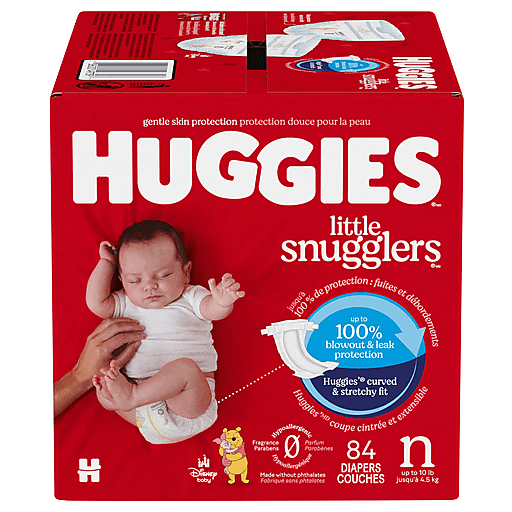 When it comes to keeping your little one clean and comfortable, Huggies Little Snugglers Diapers are the perfect choice. With up to 100% blowout and leak protection, Huggies is the only leading diaper brand with all around blowout protection* to help keep your baby clean. Front and back blowout blockers help Little Snugglers to have 28% fewer blowouts.**Huggies Little Snugglers newborn diapers offer gentle skin protection and showcase leg cuffs that create a comfortable seal to contain mess. These baby diapers feature Huggies' GentleAbsorb Liner*** that absorbs wetness on contact to help keep your baby’s skin clean and healthy. Made with your baby’s skin health in mind, our hypoallergenic diapers are made without phthalates, parabens, lotions, elemental chlorine and natural rubber latex. To ensure that you know when your baby’s diaper is ready to be changed, each infant diaper features a color-changing wetness indicator. Featuring adorable designs from Disney’s Winnie the Pooh, Little Snugglers Diapers are available in size Newborn (up to 10 lbs), size 1 (8-14 lbs) and size 2 (12-18 lbs). For the perfect diapering duo, pair Huggies baby diapers with Huggies Natural Care Sensitive Baby Wipes! (*sizes 1-2 only) (**BM Leakage Size 1 versus leading store brand) (***Available in Little Snugglers sizes Preemie-2)