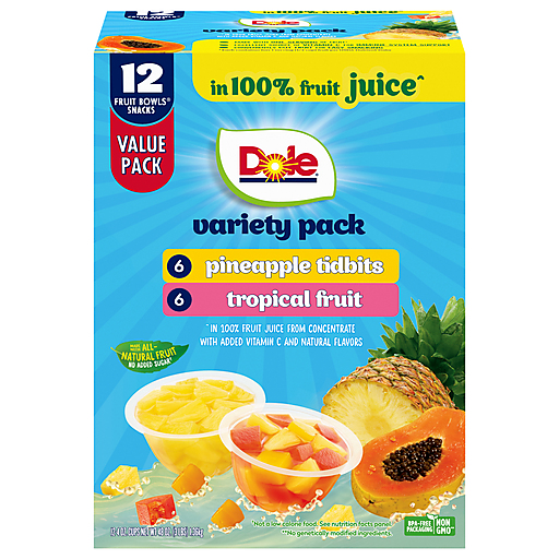Dole Pineapple Tidbits/Tropical Fruit In 100% Fruit Juice Variety Pack 12 Ea