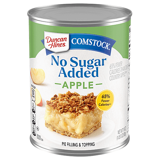 For delicious made-from-scratch flavor, with no added sugar, use Duncan Hines Comstock No Added Sugar Apple Pie Filling and Topping in your next decadent creation. Fruits picked at their peak are combined with cinnamon and other ingredients, then canned, for the perfect flavored pie filling, pie topping or baking enhancement. Simply add it to your pie shell, top your pie or combine it with your own special touches for a homemade-quality dessert that is sure to be a hit. Use it as a delicious pancake or waffle topping for a sweet, no sugar added spin on breakfast. Stock up on these must-have baking supplies for flavorful pies and baked goods in a snap. Duncan Hines Comstock: easy as pie.