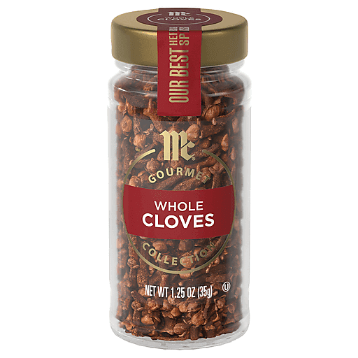 McCormick Gourmet Whole Cloves are essential for home cooks who enjoy simmering stews, slow cooking pot roasts and creating their own pickling blends. One of the world's oldest spices, they bring spicy warmth and sweet pungent flavor to your kitchen. A favorite for the winter holidays, cloves add warm, spicy-sweet flavor to mulled cider or red wine, eggnog and poached fruit. For baked ham, score a diamond pattern into the ham's surface and stud each section with a whole clove before glazing. Cloves are an essential year-round flavoring in Vietnamese pho and Chinese five-spice powder. Prized in northern Indian cuisine, they appear in the spice blend garam masala, in the spiced tea chai, and in recipes for meat and vegetable curries.