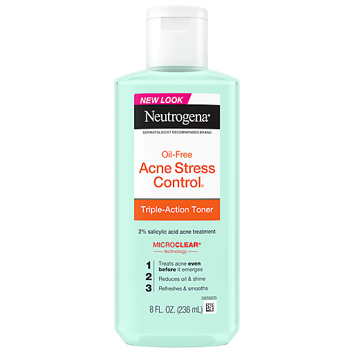 Neutrogena Acne Stress Control Toner, Oil-Free Triple Action Toner is a multitasking pore cleaner. This toner for acne-prone skin is here to transform your skincare routine with a blend of nourishing ingredients & effective acne-fighting properties. The facial toner works three ways for clearer skin. Salicylic acid toner with MicroClear technology, treats acne even before it emerges, boosting delivery of clinically proven salicylic acid acne medicine, that acts as a face exfoliator, to unclog congested pores & allow treatment to penetrate deep within skin’s surface to the breakout source. Oil-dissolving complex helps reduce oil & shine. Apply a soaked toner pad to face daily after cleansing. Whether dealing with acne-prone skin or just need a reliable toner for oily skin, this Neutrogena toner is your go-to face skin care solution. Make acne one less stress in your life.