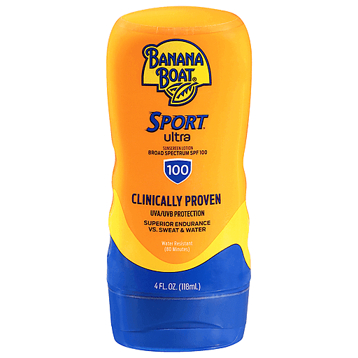 Great for your active lifestyle! Banana Boat Sport Ultra Sunscreen Lotion SPF 100 provides powerful protection that absorbs quickly, is non-greasy and won't run into your eyes. This lightweight lotion protects against 99% of burning rays and is designed especially for sport enthusiasts and active individuals who need sport-strength sun protection that doesn’t play around! Banana Boat sunscreen SPF 100 has superior endurance versus sweat and water—it lasts as long as the fun does*! *Reapply this safe and effective broad spectrum UVA and UVB protection as directed on the product label. Protect the fun on earth with Banana Boat!