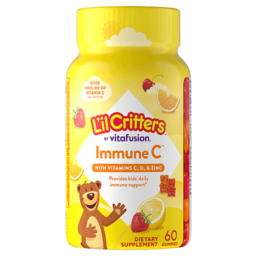 L’il Critters Immune C provides an excellent source of vitamin C for your little one to help support immune health.* L’il Immune C is infused with delicious fruit flavors that make it fun for your child to get Vitamin C.* L’il Critters supplements have the flavors and fun kids love without the extras you don’t want – No high-fructose corn syrup, No synthetic (FD&C) dyes, No dairy and No gluten.