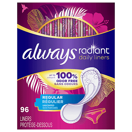 Always Liners, Daily, Unscented, Regular 96 Ea