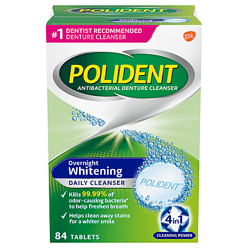 Polident Antibacterial Overnight Whitening Tablets Denture Cleanser 84 Ea