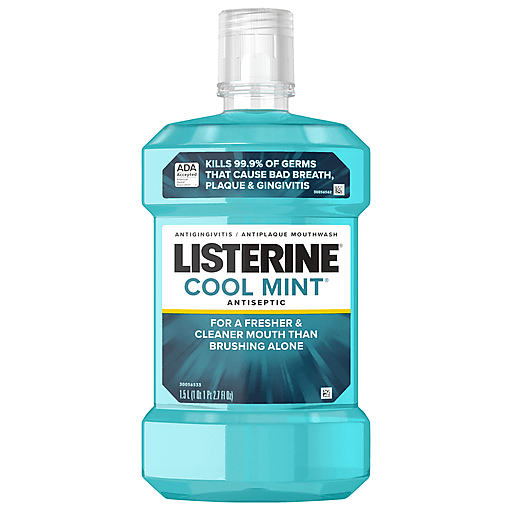 Protect your mouth from germs and get fresh breath with the Listerine Cool Mint Antiseptic Mouthwash. Accepted by the American Dental Association (ADA), this germ-killing mouthwash for bad breath is clinically shown to reduce plaque 52 percent more and reduce gingivitis 21 percent more than brushing and flossing alone. Adding a 30-second rinse of this refreshing mint flavored oral rinse to your morning and evening oral hygiene routines is all it takes to get 24-hour germ protection against those that cause bad breath, plaque, and gingivitis. From the #1 dentist recommended brand** of over the counter mouthwashes, Listerine Cool Mint Antiseptic Mouthwash contains the antiplaque and antigingivitis ingredients eucalyptol, menthol, methyl salicylate and thymol. *Germ kill provides sustained plaque reduction after a dental cleaning. Rinse is not intended to replace brushing or flossing. Use product only as directed. *when used twice daily **IQVIA survey May 2022-2026