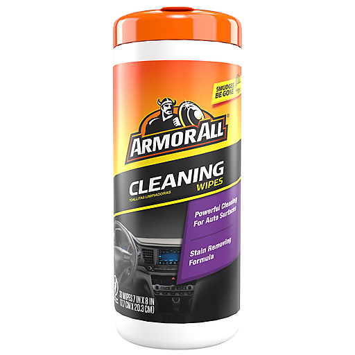 Your car's delicate surfaces are too important to trust to a household cleaner. Get that natural "just detailed" look from Armor All Cleaning Wipes. Meticulously engineered for your car's special needs, these convenient wipes lift away dirt and debris, revealing your car's rich, natural beauty without harming delicate surfaces. Great for your car's dash, vinyl, fabric, carpet, consoles, leather and more. Lint-free disposable Cleaning Wipes won't leave a greasy residue on your hands. Features a Moisture Lock Lid which guarantees wipes will not dry out for one year after purchase.