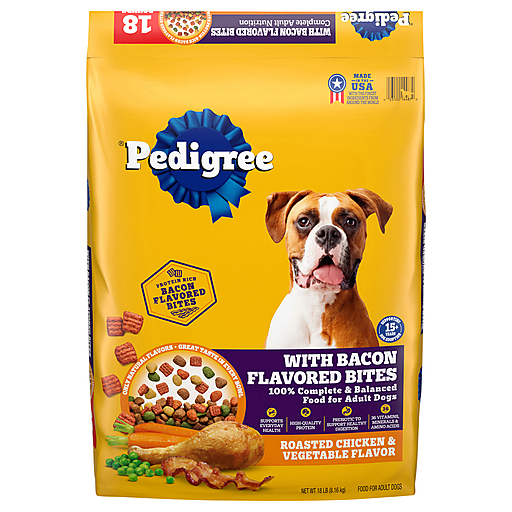 Pedigree With Bacon Flavored Bites Adult Roasted Chicken & Vegetable Flavor Food For Dogs 18 Lb