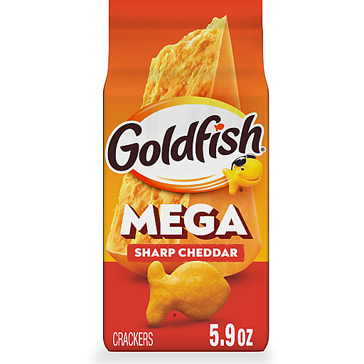 Get ready to enjoy a snack that's mega crispy and mega delicious with Goldfish® Mega Bites Sharp Cheddar Crackers! These baked snack crackers are big and crispy and packed with real sharp cheddar cheese flavor in every crunchy bite. Imagine a satisfying crunch that gives way to a cheesy taste explosion, perfect for those moments when you want to bring mega fun to snack time. Whether you share with friends during movie nights or add to lunchboxes, these crackers bring a touch of excitement to snacking at any time. Always baked, never fried, these mega Goldfish crackers deliver maximum flavor with satisfying crunch. Grab a bag of Goldfish® Mega Bites Sharp Cheddar Crackers for a bold, cheesy snack!