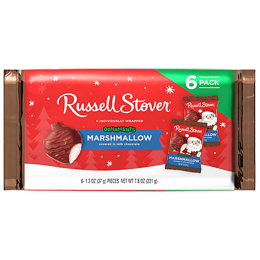 Unwrap the magic with our RUSSELL STOVER Milk Chocolate Marshmallow Ornament 6 Pack, perfect for sharing! Each 1.3 oz. candy bar has a fluffy marshmallow center covered in our delicious milk chocolate shaped like a holiday ornament. Individually wrapped, this sweet treat is perfect for stocking stuffers, holiday party festivities or sharing with friends and loved ones! Made with the finest ingredients, RUSSELL STOVER has been an American-made classic since 1923. We are proud to be part of your Christmas candy traditions and everyday indulgences.