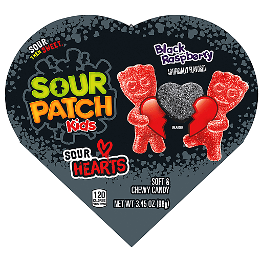 Sour Patch Kids Sour Hearts Soft & Chewy Black Raspberry Candy 3.45 Oz