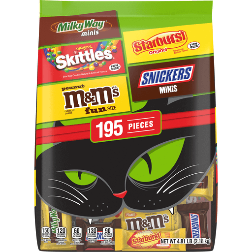 Sink your fangs into this 195-count bulk variety bag this Treat Season! Featuring a wickedly delicious assortment of fun size and mini M&M'S Peanut, SNICKERS, SKITTLES Original, STARBURST Original, and MILKY WAY Halloween Candy, this variety bag is sure to have you howling at the moon.
