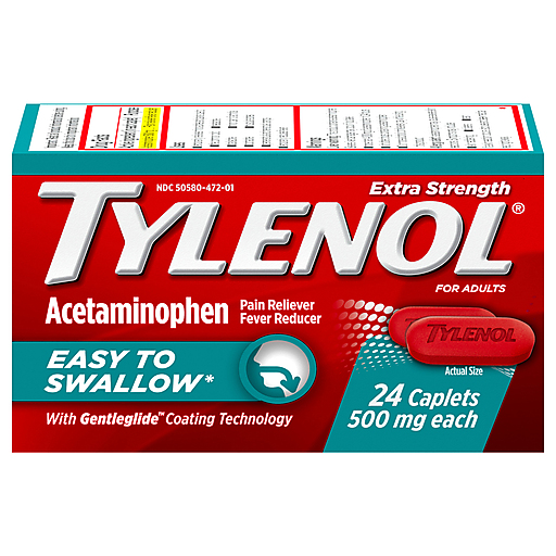Temporarily reduce fever & relieve minor aches & pains with Tylenol Extra Strength Easy-to-Swallow Coated Acetaminophen Caplets. This easy-to-swallow pain reliever features Gentleglide coating technology*, making it easier to swallow. This coating provides a better experience for those with dysphagia or who struggle with taking pills, caplets, or tablets. Each coated caplet contains 500 milligrams of acetaminophen, a trusted pain reliever & fever reducer. From the #1 doctor-recommended brand for pain relief & fever reduction, these coated pain relief caplets deliver fast relief from minor aches & pains due to headache, backache, toothache, arthritis pain, & the common cold. Adults & children 12+ should take 2 easy-to-swallow caplets every 6 hours while symptoms last. *Gentleglide coating is easier to swallow than regular Extra Strength Tylenol Caplets, among those with a preference.